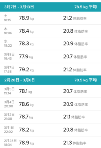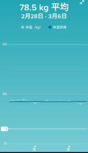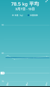 現在の食事制限レベルで状態維持なので、もっと食事制限をする次週以降は多少の減少がみられるのでは!?と期待しています。